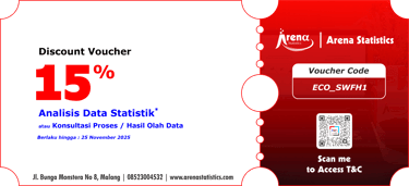 Diskon sebesar 15% berlaku untuk konsultasi proses / hasil olah data semua teknik analisis data