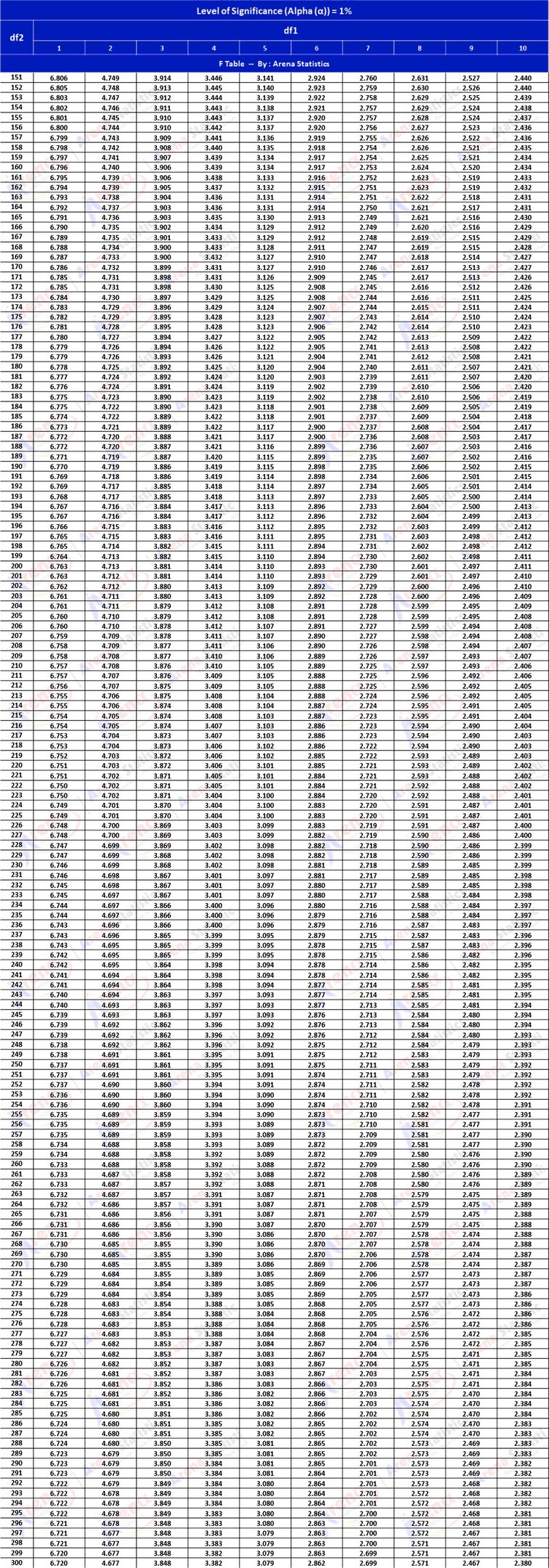 F Tabel dengan Alpha 1% dan Degree of Freedom 2 (df2) 151 - 300