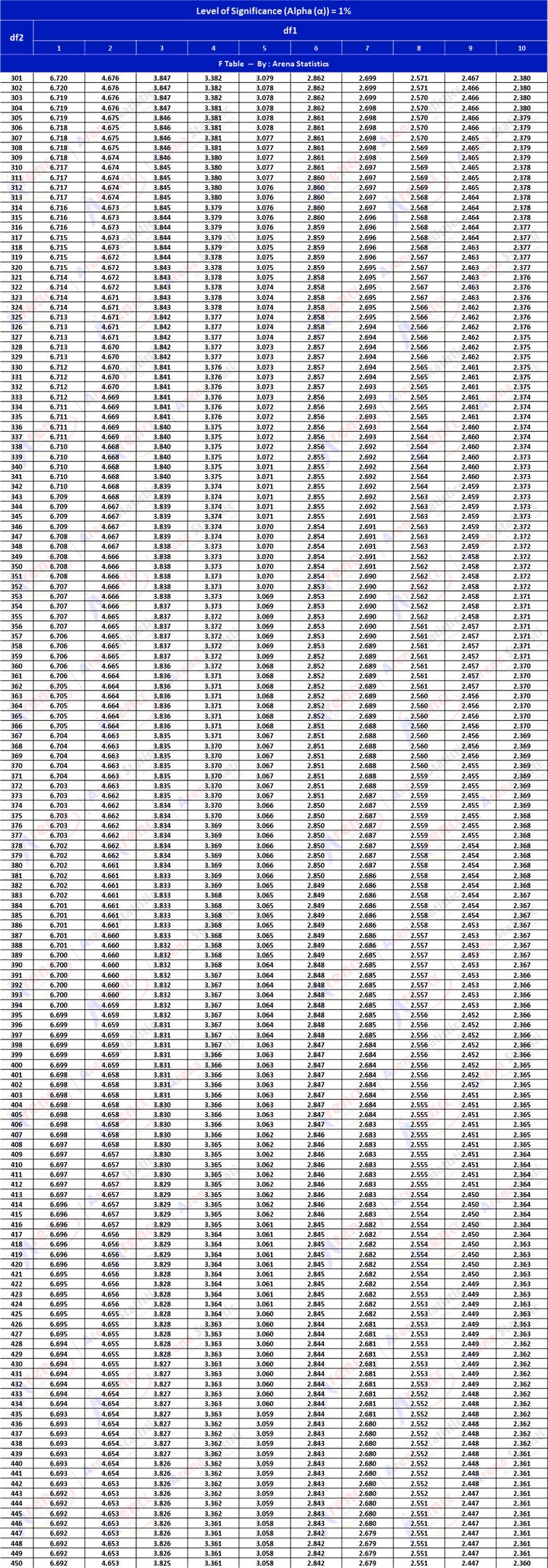 F Tabel dengan Alpha 1% dan Degree of Freedom 2 (df2) 301 - 450
