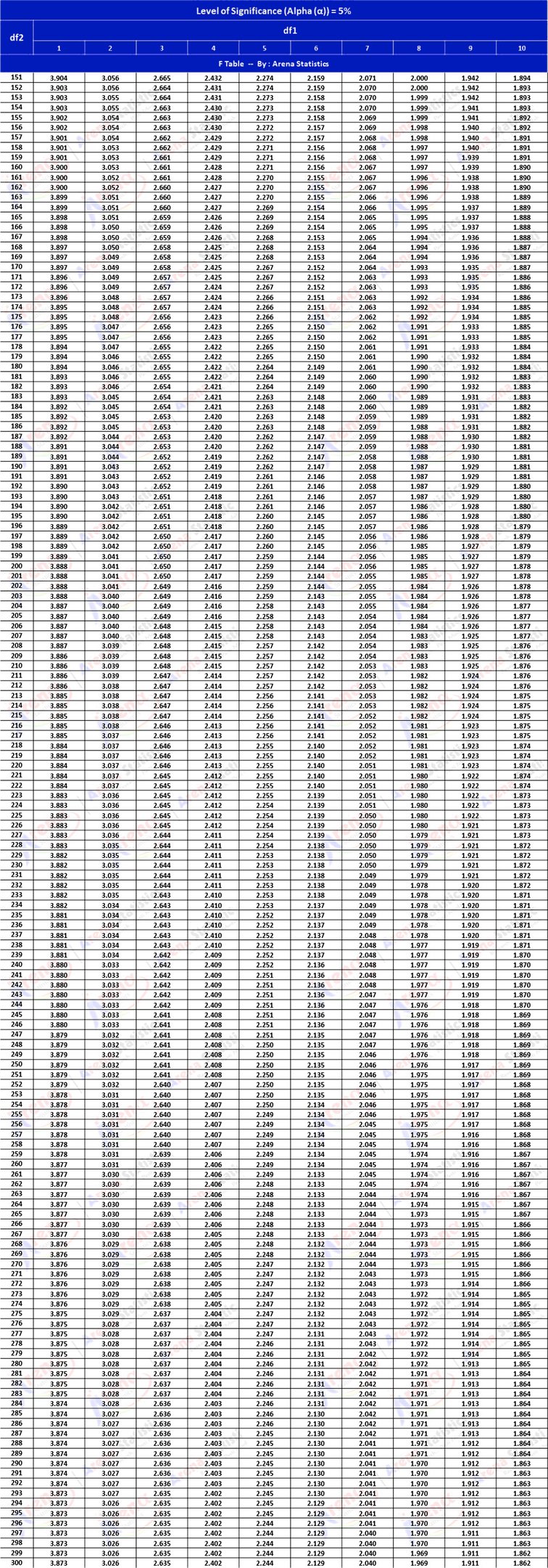 F Tabel dengan Alpha 5% dan Degree of Freedom 2 (df2) 151 - 300