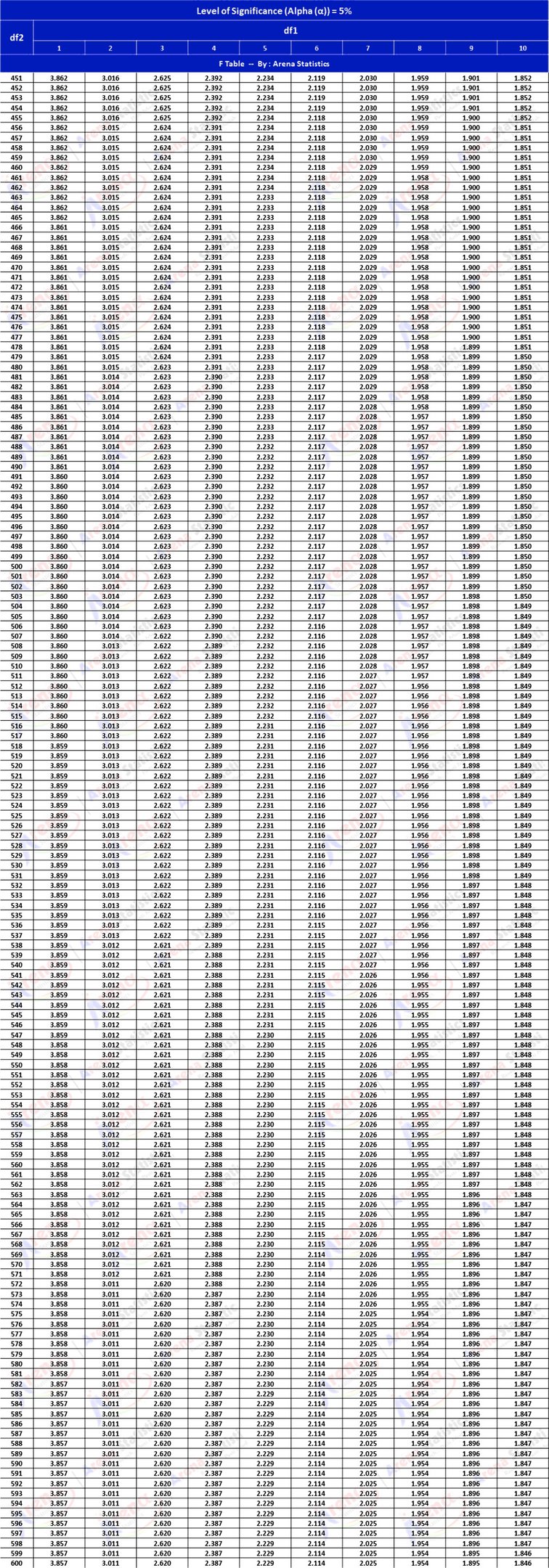 F Tabel dengan Alpha 5% dan Degree of Freedom 2 (df2) 451 - 600