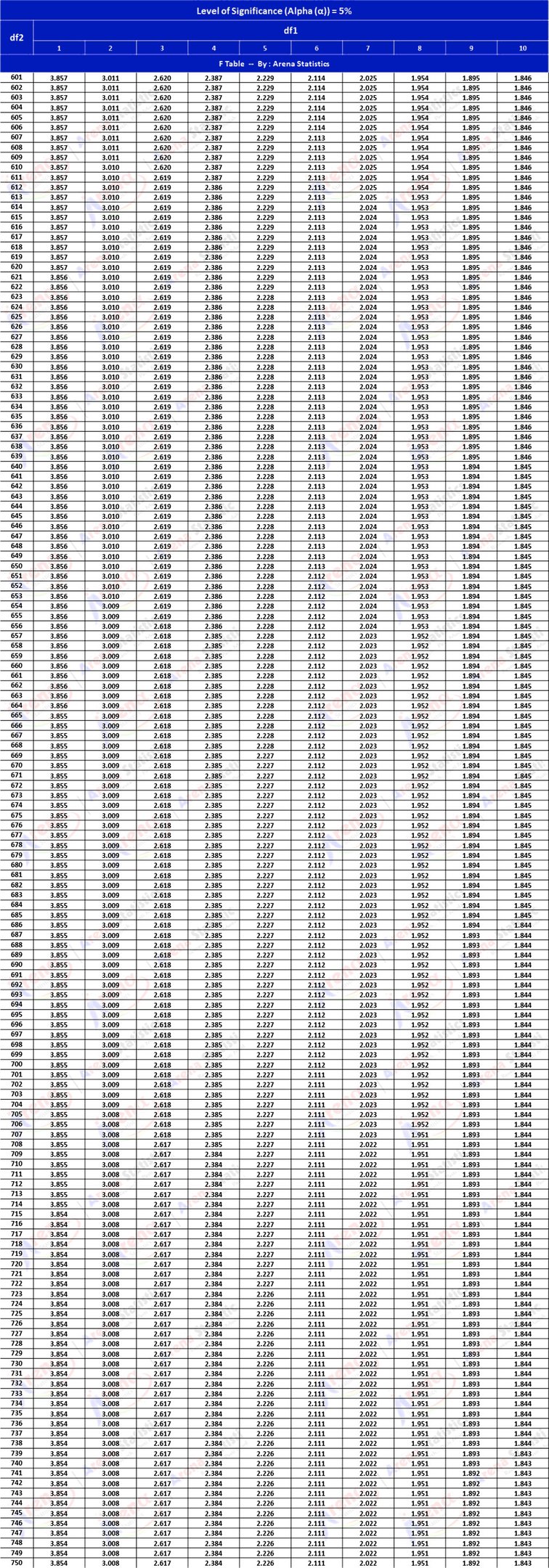 F Tabel dengan Alpha 5% dan Degree of Freedom 2 (df2) 601 - 750