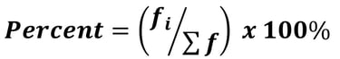 Apabila dilanjutkan pada distribusi frekuensi, maka frekuensi diperoleh dengan menghitung banyak observasi sesuai dengan interval yang sudah dibuat sebelumnya, kemudian menghitung persentase dengan formula sebagai berikut :
