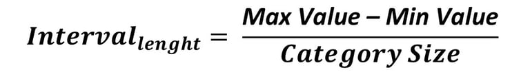 Category size (banyaknya kelas Interval) yang dapat dipertanggung jawabkan secara statistik (namun bukan berarti yang lain tidak dapat dipertanggung jawabkan) atau diperoleh category size (banyaknya kelas Interval) secara alami, dapat dihitung menggunakan formula Sturges.
