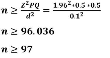 Jika nilai d = 10% (0.1), maka besar sampelnya adalah