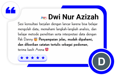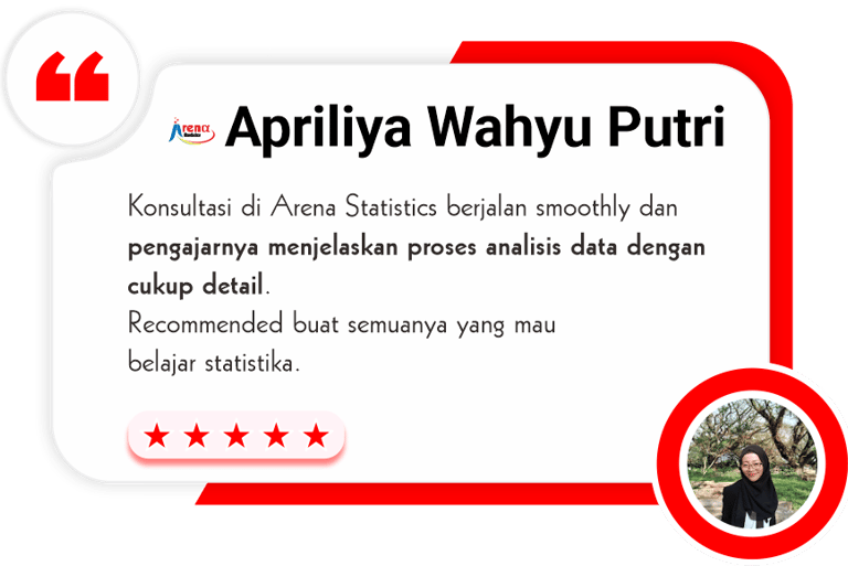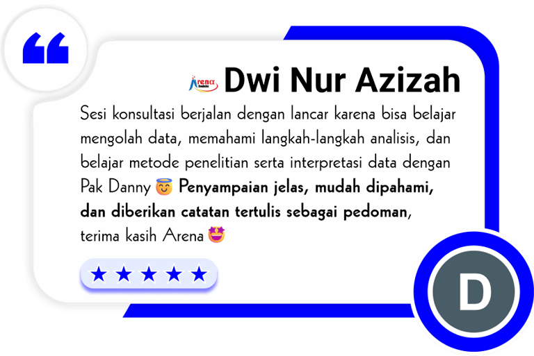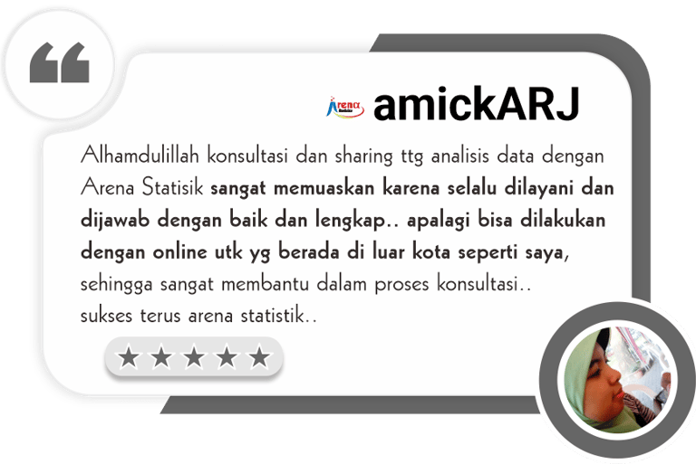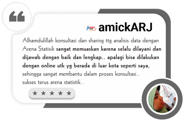 Konsultasi bisa secara langsung (face to face) dikantor Arena Statistics atau bisa secara online melalui Zoom Live Consultation (dengan mengaktifkan kamera)