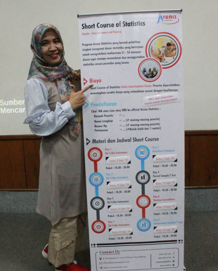 Merupakan Face to Face Learning Event mengenai Statistika dan Metode Penelitian Kuantitatif yang diselenggarakan di Kota Malang yang bertujuan untuk memberikan pencerahan kepada akademisi maupun praktisi agar memiliki analytical thinking dan pemahaman statistika yang sesungguhnya secara komprehensif dan dapat dipertanggung-jawabkan sehingga mudah diterapkan pada bidang ilmu terapan lainnya.
