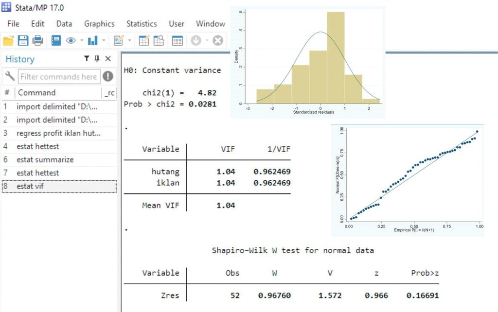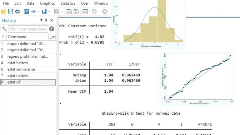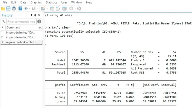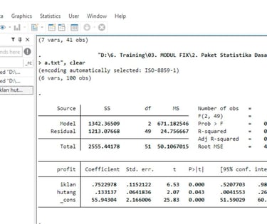 Dua model statistik yang populer digunakan dikalangan akademisi adalah Analisis Regresi Linier dan Regresi Logistik yang kerap kali diaplikasikan untuk semua bidang. dan STATA mampu melakukan proses pengolahan regresi tersebut lebih cepat dibandingkan software lain.