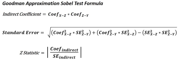 Dalam banyak software statistik seperti lisrel, smartpls, warppls, gscapro, dan sebagainya, developer lebih suka menggunakan goodman approximation sobel test karena lebih memungkinkan hasil pengujian indirect effect memberikan keputusan yang signifikan. Hal ini dikarenakan Standard Error (SE) bernilai semakin kecil akibat adanya pengurangan dari perkalian standard error eksogen terhadap mediasi dengan standard error mediasi terhadap endogen. Standard error (SE) bertolak belakang dengan statistik uji Z (Z statistic), sehingga semakin rendah standard error (SE) maka Z statistic semakin tinggi. Dengan demikian kemungkinan hasil indirect effect signifikan cenderung lebih tinggi dibandingkan sobel test lainnya.