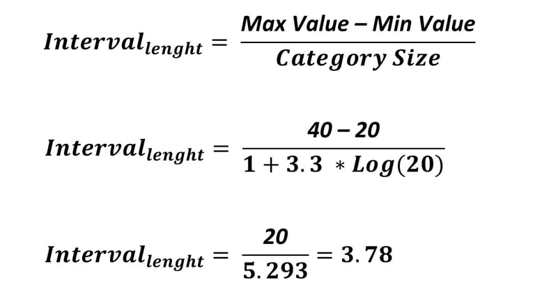 (note : pembulatan interval lenght maupun category size sebaiknya dilakukan setelah menentukan interval (batas bawah dan batas atas))