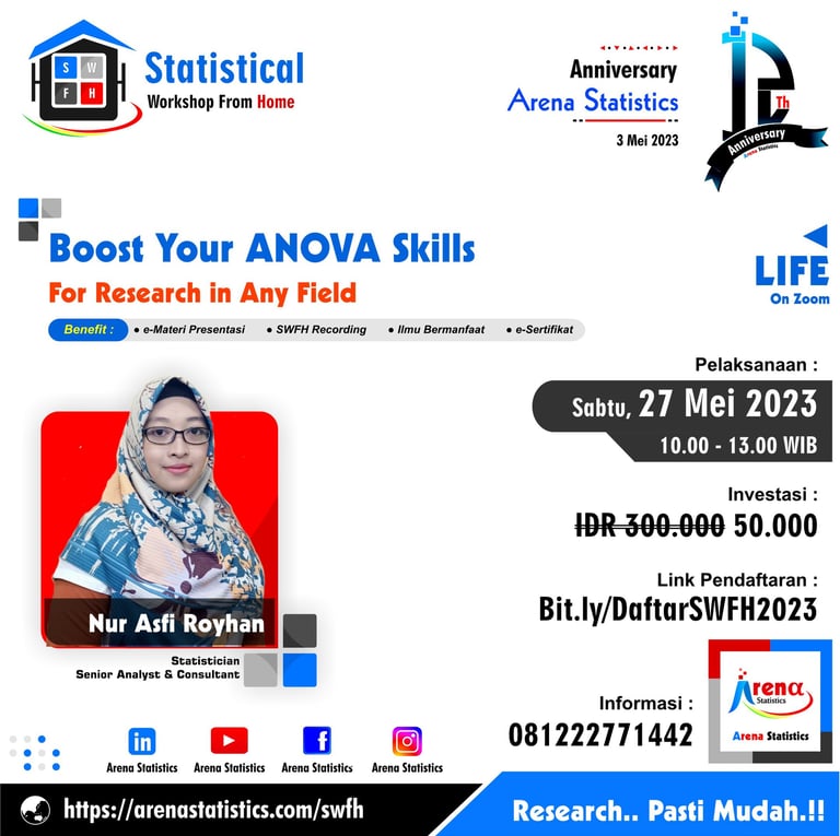 Oleh karena itu, SWFH kali ini mengajak Anda untuk memperluas keterampilan dan pengetahuan Anda dalam menganalisis data menggunakan ANOVA, sehingga penelitian Anda menjadi lebih berkualitas.