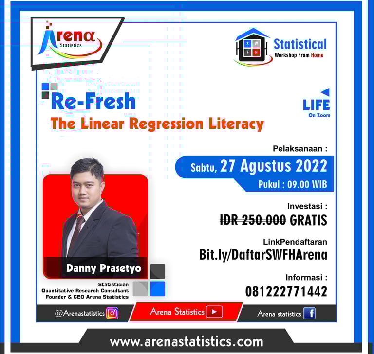 Oleh karena itu, Arena Statistics mengajak anda untuk me-refresh sekaligus memahami konsep beserta cara menginterpretasikan hasil Analisis Regresi Linier dalam Statistical Workshop From Home (SWFH) Arena Statistics 2022.