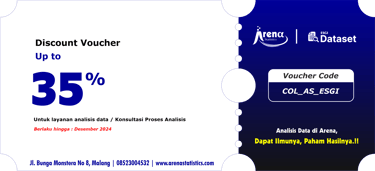 Simpan voucher ini dan tunjukkan saat akan menggunakan layanan analisis data / konsultasi di Arena Statistics.